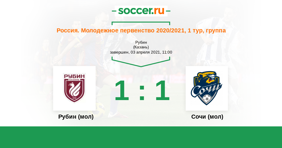 История матча Рубин (мол) против Сочи (мол)