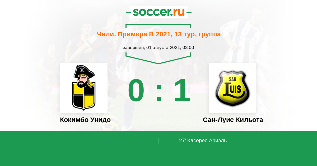 Протокол матча Кокимбо Унидо против Сан-Луис Кильота