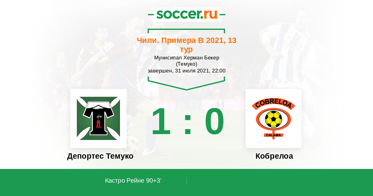 Протокол матча Депортес Темуко против Кобрелоа
