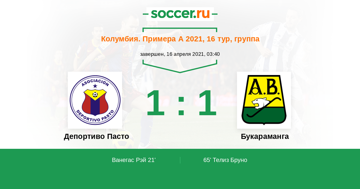 Протокол матча Депортиво Пасто против Букараманга