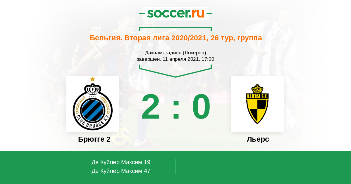 Протокол матча Брюгге 2 против Льерс