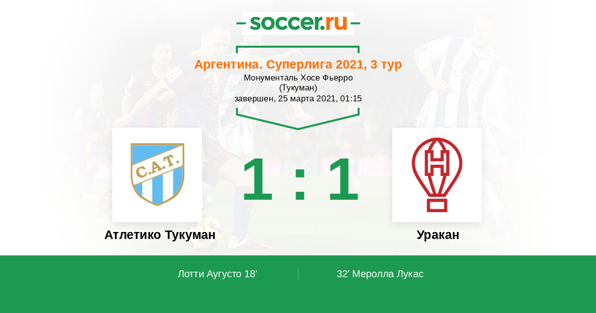 Протокол матча Атлетико Тукуман против Уракан