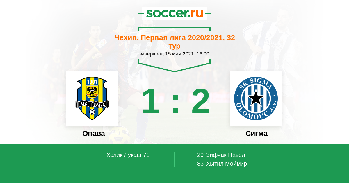 Протокол матча Опава против Сигма