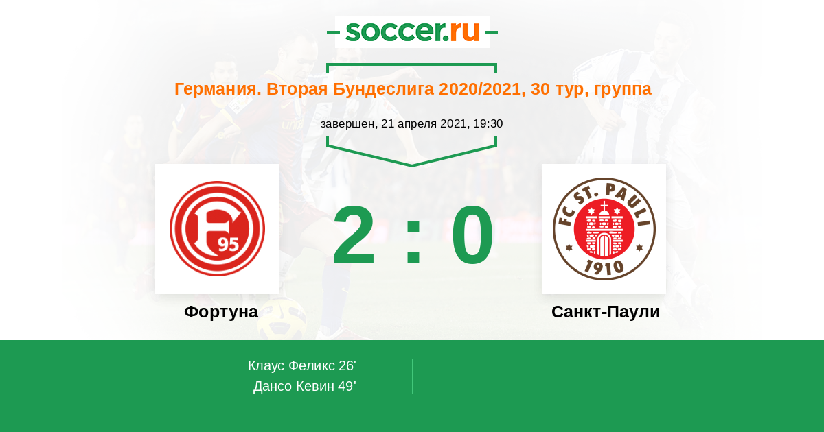Протокол матча Фортуна против Санкт-Паули