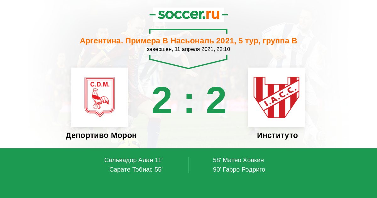 Протокол матча Депортиво Морон против Институто