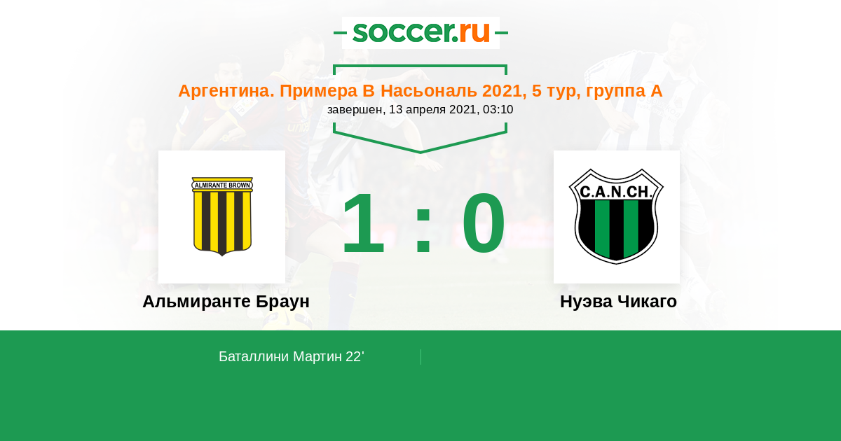 Протокол матча Альмиранте Браун против Нуэва Чикаго