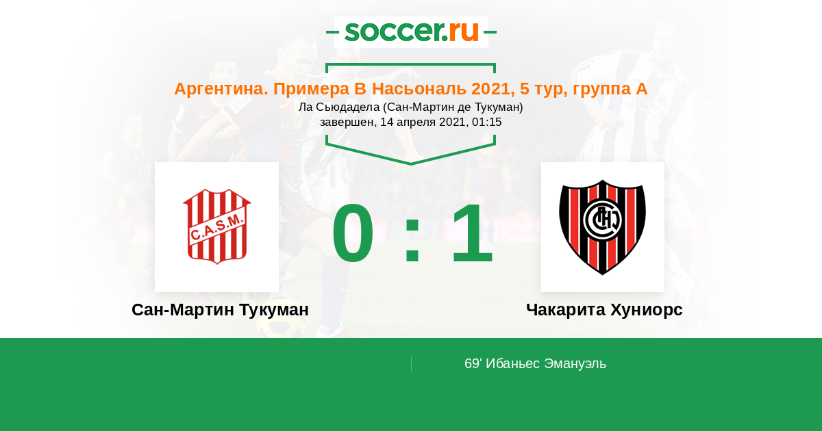 Протокол матча Сан-Мартин Тукуман против Чакарита Хуниорс