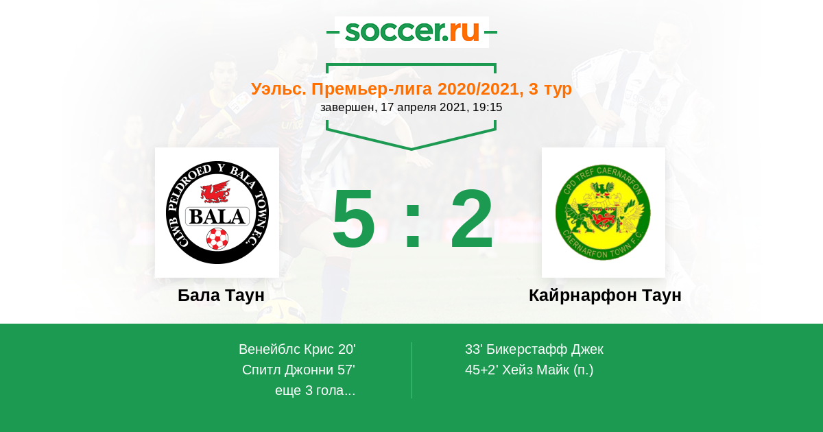 Протокол матча Бала Таун против Кайрнарфон Таун