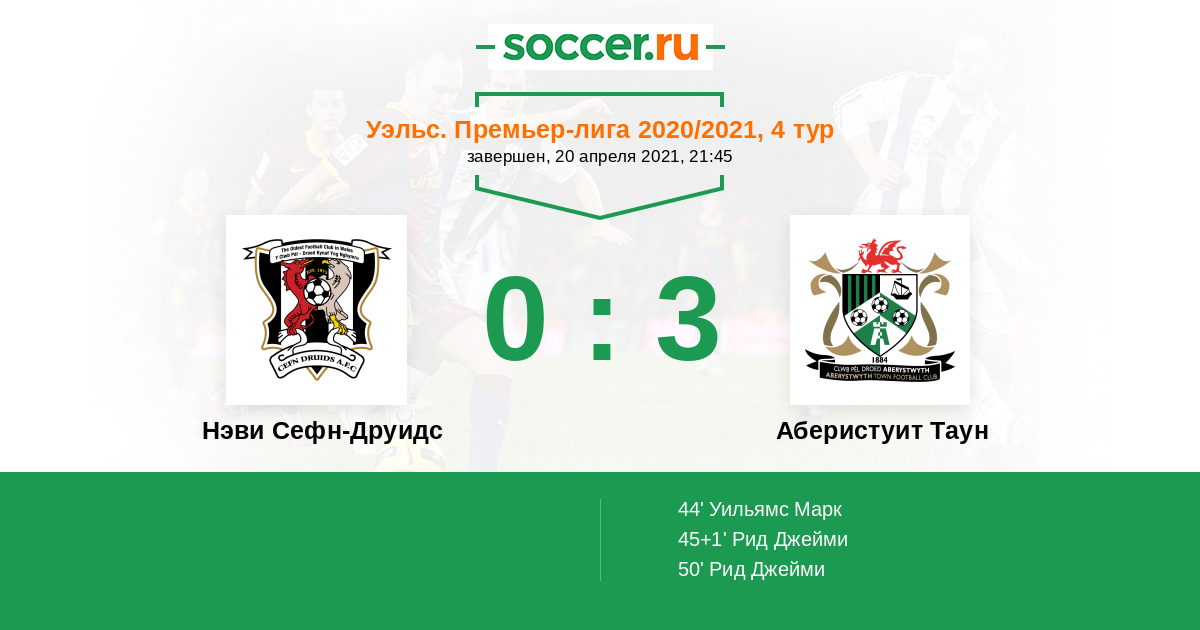 Протокол матча Нэви Сефн-Друидс против Аберистуит Таун