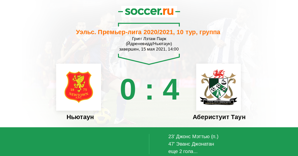 Протокол матча Ньютаун против Аберистуит Таун