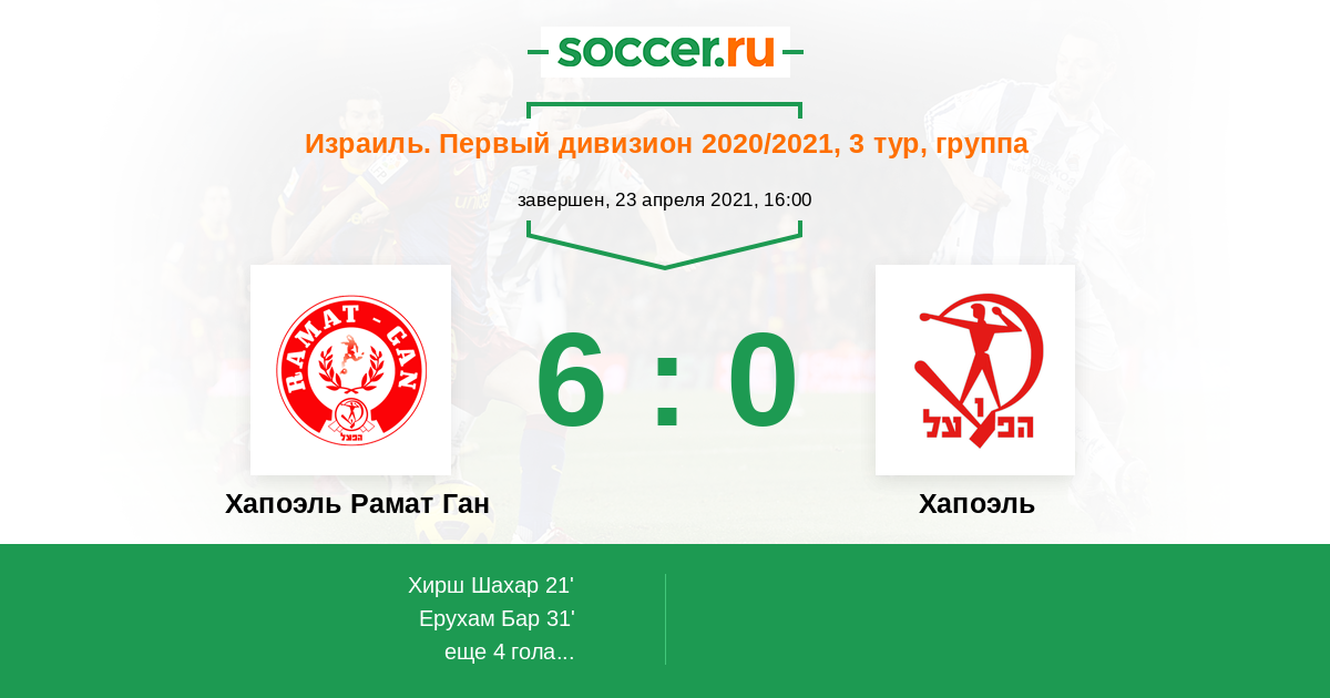 Протокол матча Хапоэль Рамат Ган против Хапоэль