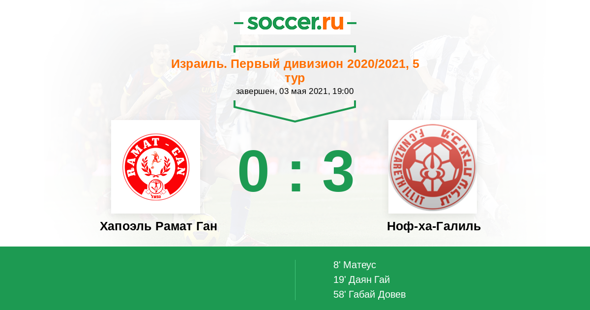 Протокол матча Хапоэль Рамат Ган против Ноф-ха-Галиль