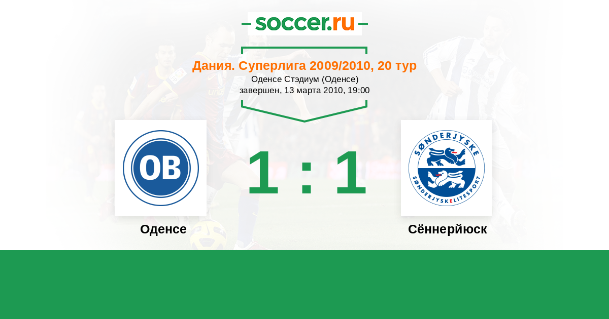 Дания. Суперлига 03.05.2010 Сённерйюск Логотип футбольный клуб Сённерйюск (Хадерслев) 2:0 Логотип футбольный клуб Оденсе Оденсе