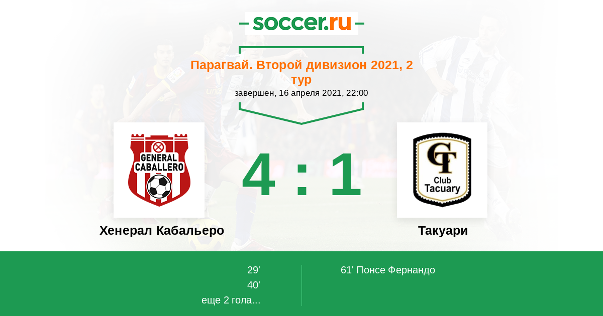 Протокол матча Хенерал Кабальеро против Такуари