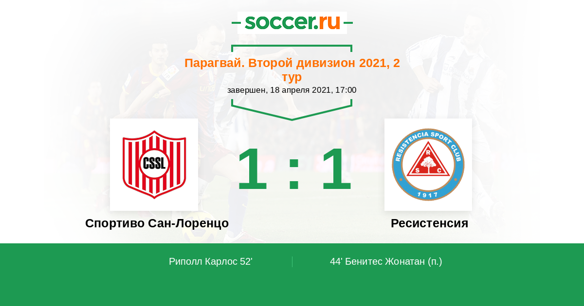Протокол матча Спортиво Сан-Лоренцо против Ресистенсия