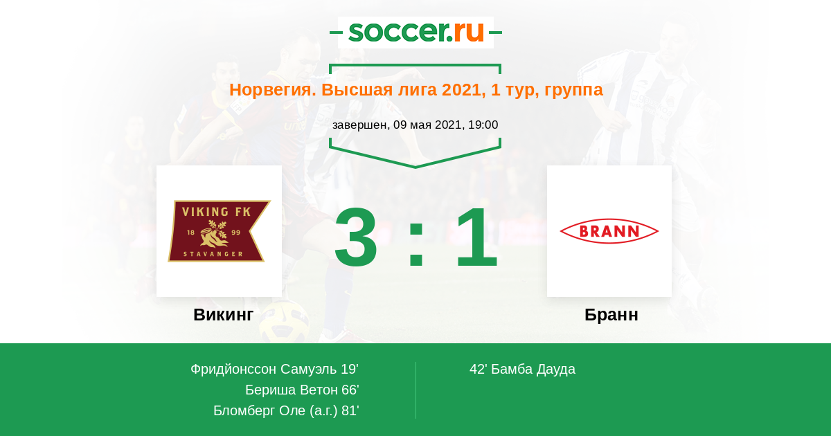 42' (1:1) Бамба Дауда (11) (Странд Петтер (9))