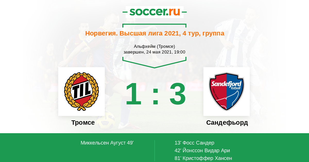 Протокол матча Тромсе против Сандефьорд