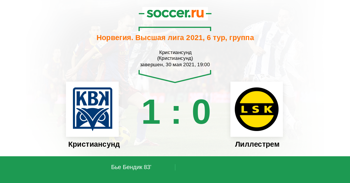 83' (1:0) Бье Бендик (13) (Аскар Амин (18))