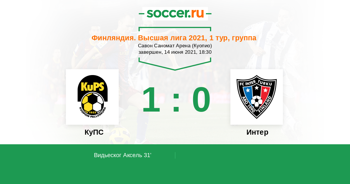 31' (1:0) Видьеског Аксель (26) (Хаарала Сантери (29))