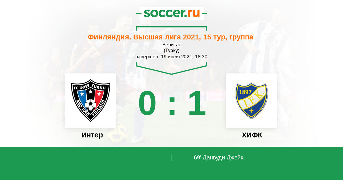 Протокол матча Интер против ХИФК