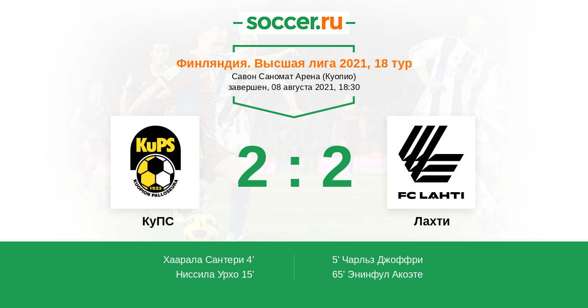 Протокол матча КуПС против Лахти