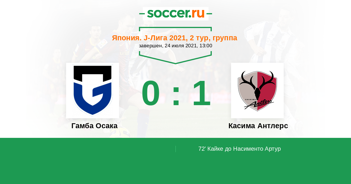 Протокол матча Гамба Осака против Касима Антлерс