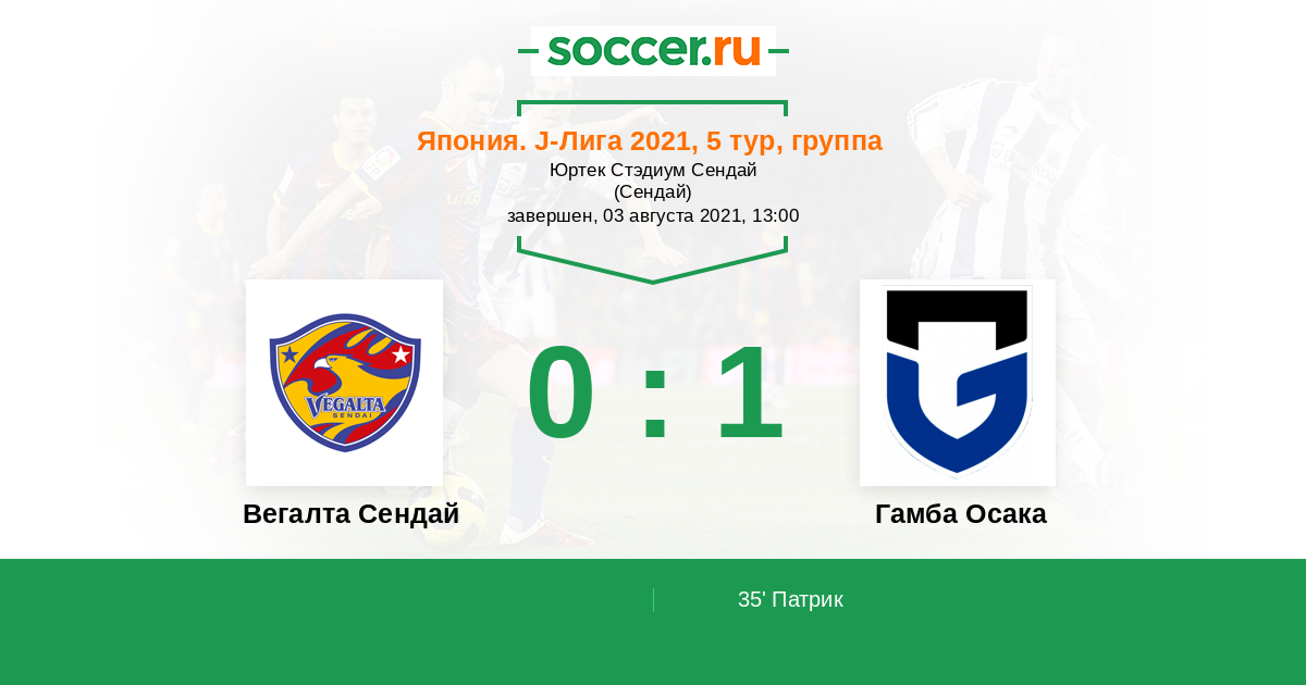 Протокол матча Вегалта Сендай против Гамба Осака