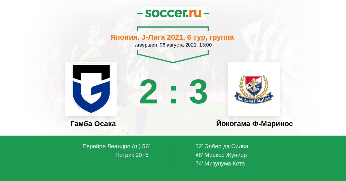 Протокол матча Гамба Осака против Йокогама Ф-Маринос