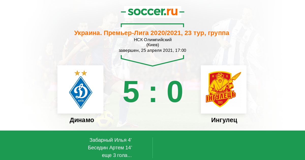 Протокол матча Динамо против Ингулец