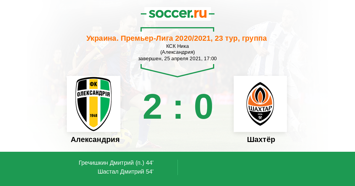 Протокол матча Александрия против Шахтёр