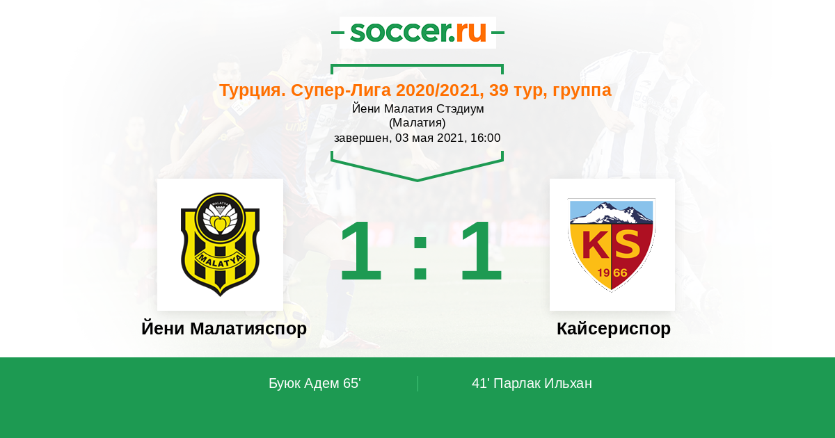 Протокол матча Йени Малатияспор против Кайсериспор