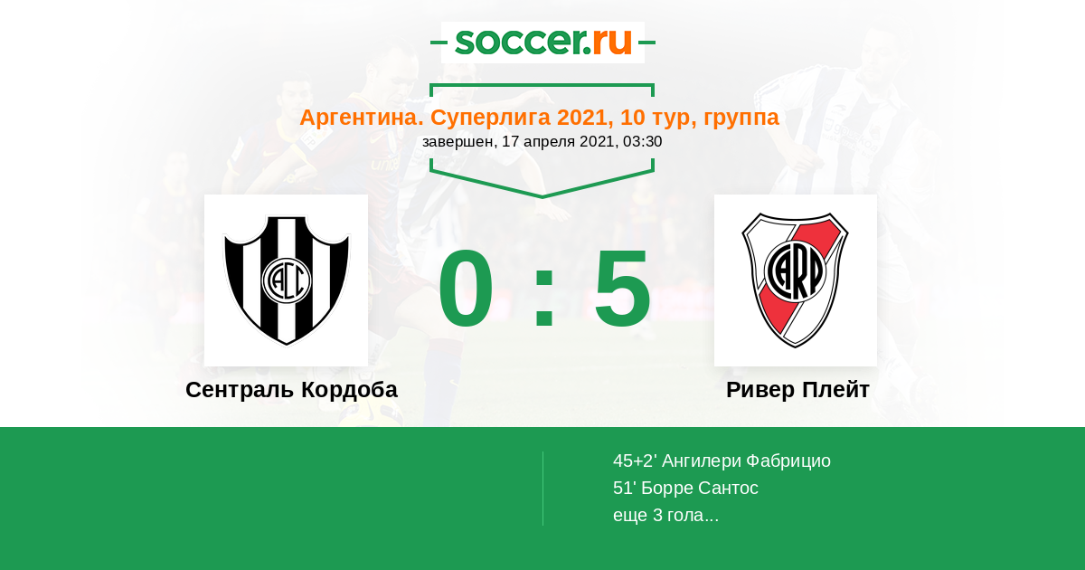 Протокол матча Сентраль Кордоба против Ривер Плейт