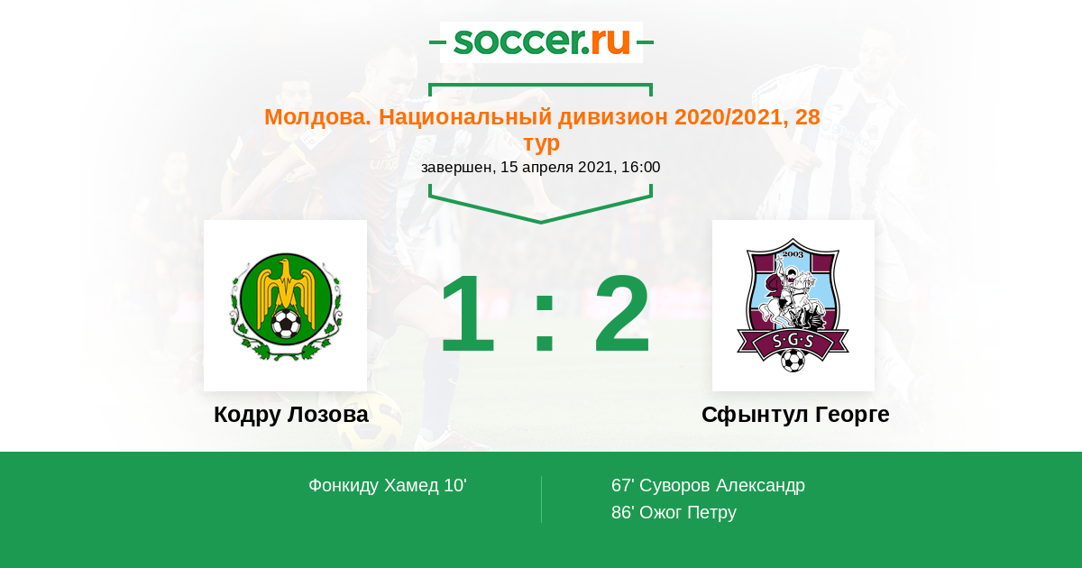 Протокол матча Кодру Лозова против Сфынтул Георге