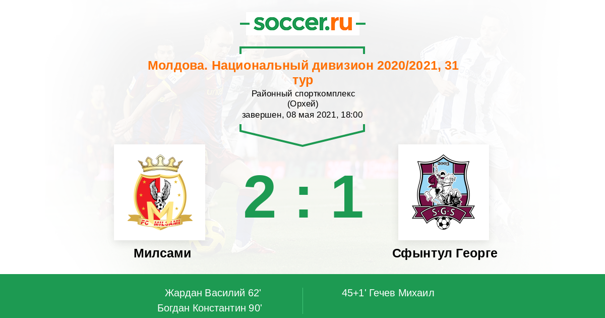 Протокол матча Милсами против Сфынтул Георге