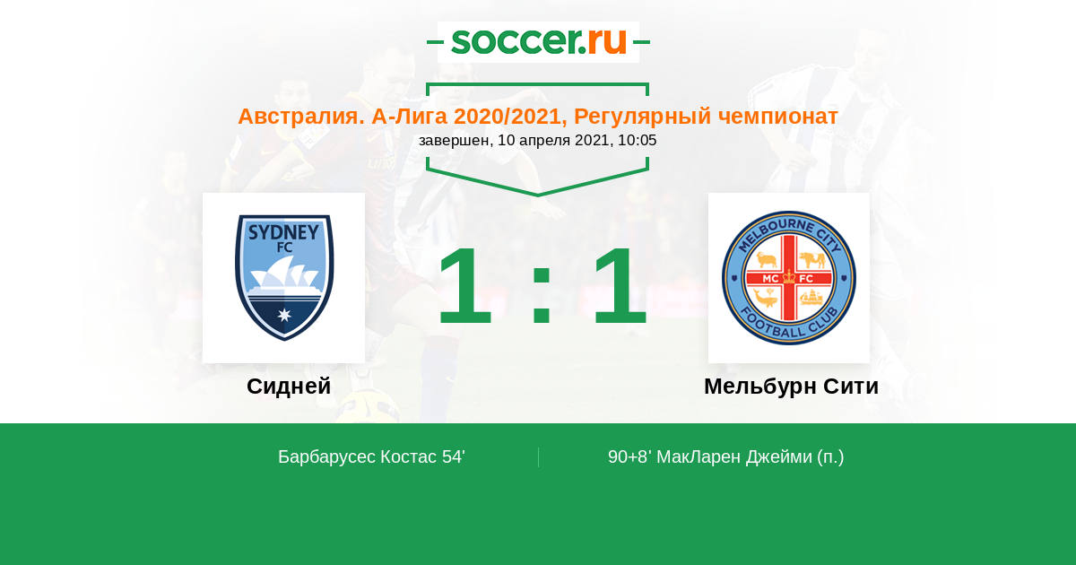 Протокол матча Сидней против Мельбурн Сити