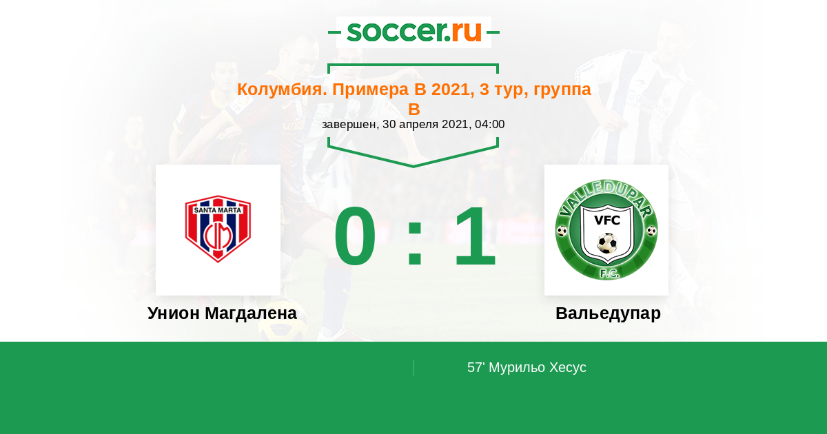 Протокол матча Унион Магдалена против Вальедупар