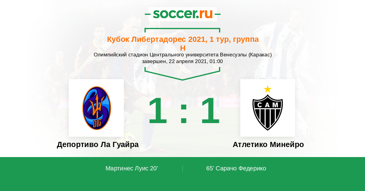 Протокол матча Депортиво Ла Гуайра против Атлетико Минейро