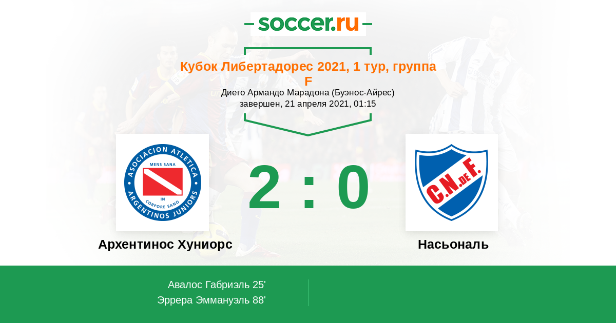 Протокол матча Архентинос Хуниорс против Насьональ