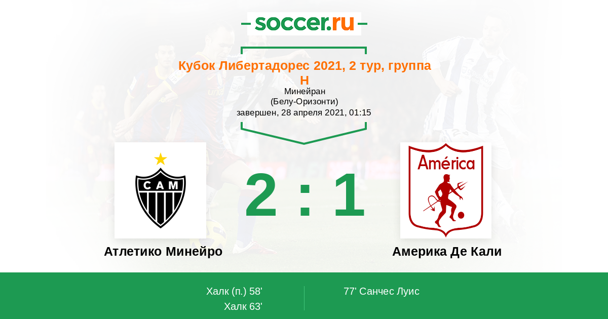 Протокол матча Атлетико Минейро против Америка Де Кали