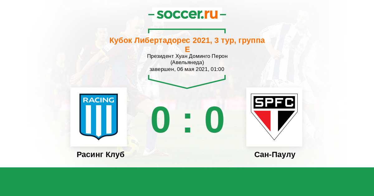 Протокол матча Расинг Клуб против Сан-Паулу