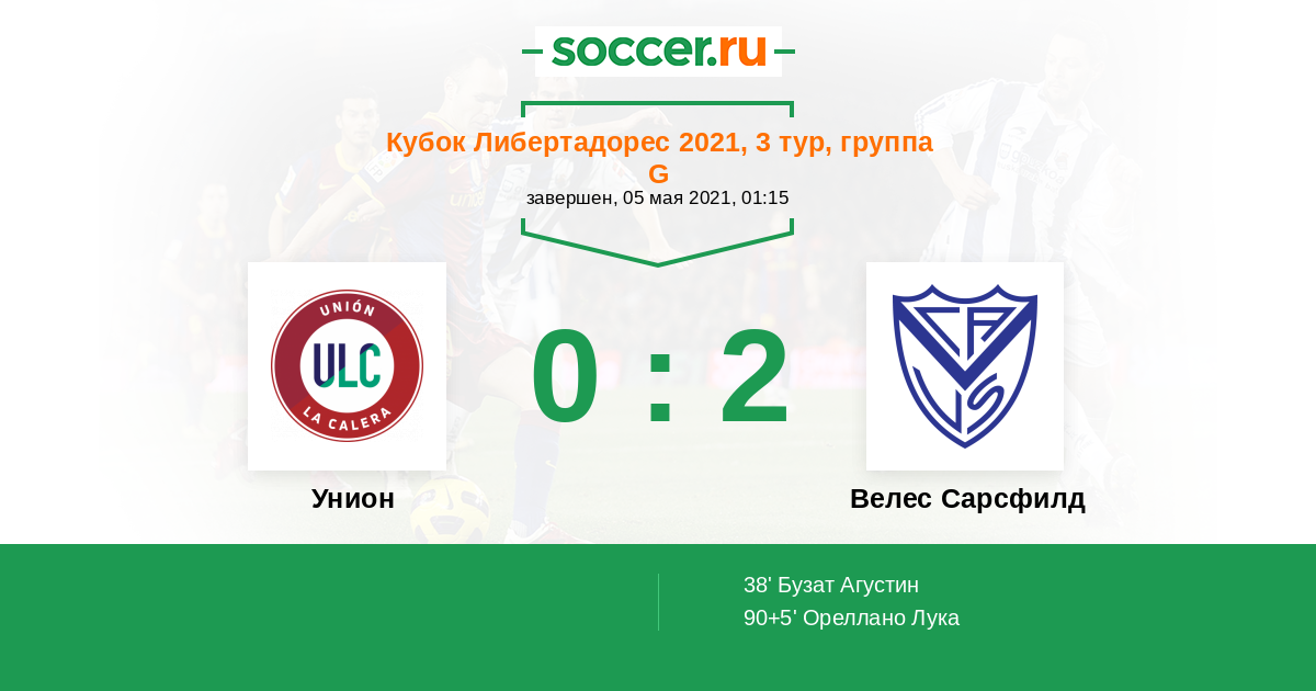 Протокол матча Унион против Велес Сарсфилд