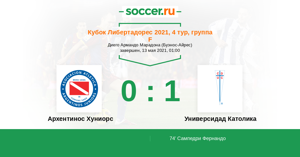 Протокол матча Архентинос Хуниорс против Универсидад Католика