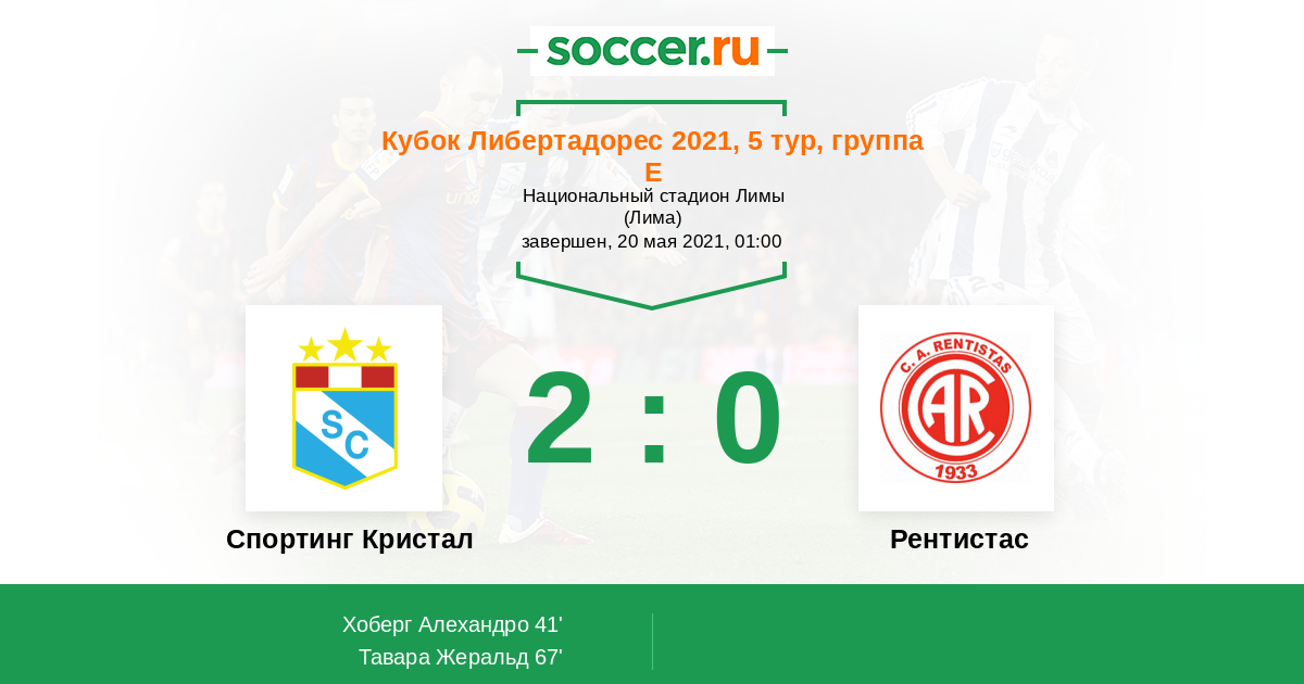 41' (1:0) Хоберг Алехандро (8) (Корозо Вашингтон (11))