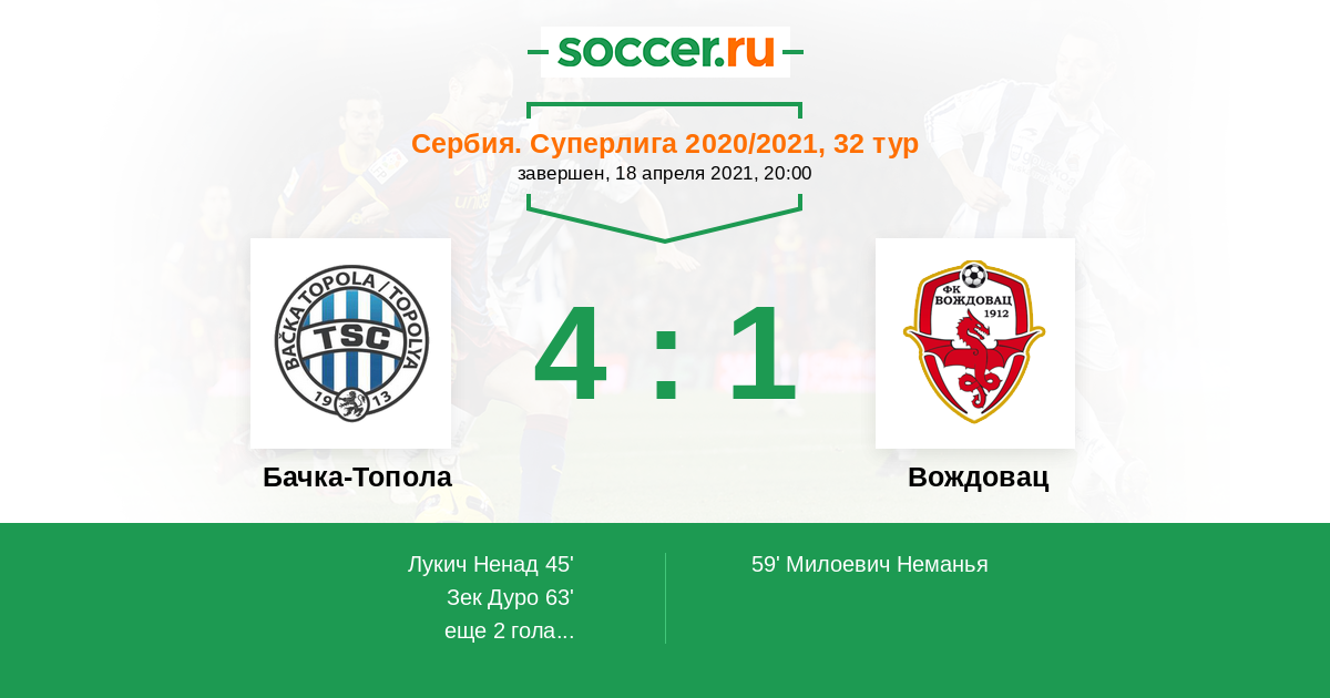 Протокол матча Бачка-Топола против Вождовац