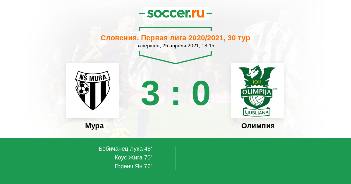 Протокол матча Мура против Олимпия