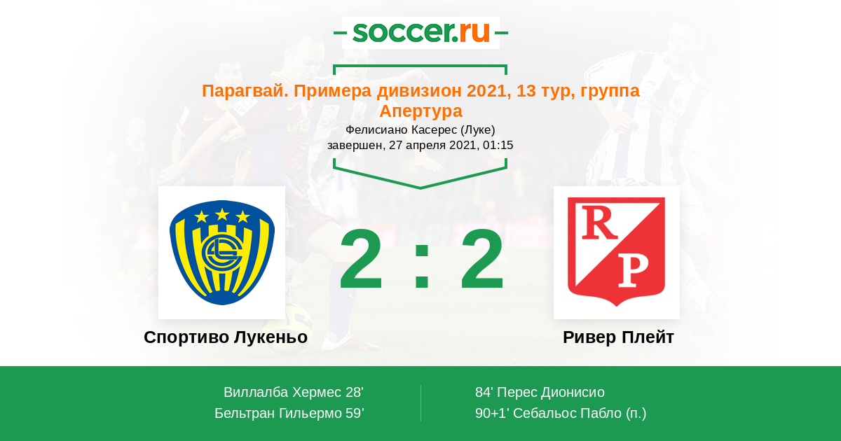 Протокол матча Спортиво Лукеньо против Ривер Плейт