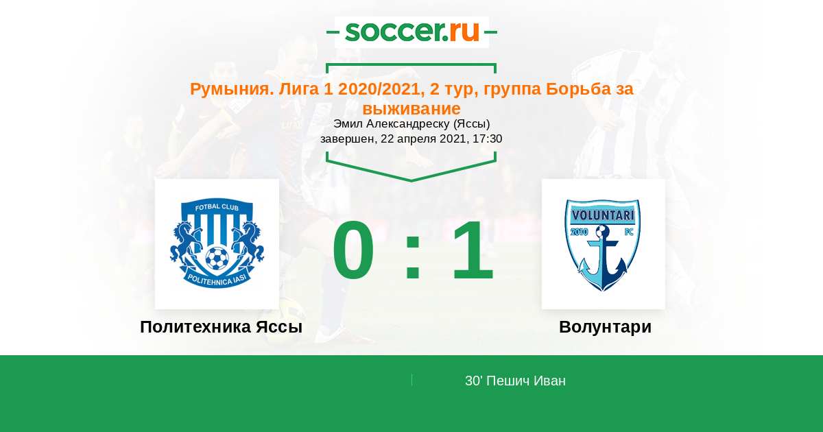 Протокол матча Политехника Яссы против Волунтари