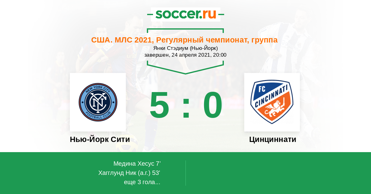 Протокол матча Нью-Йорк Сити против Цинциннати