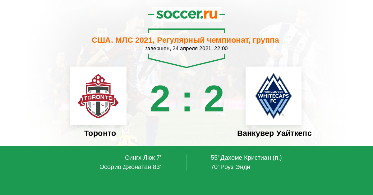 Протокол матча Торонто против Ванкувер Уайткепс