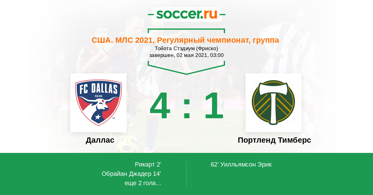 Протокол матча Даллас против Портленд Тимберс